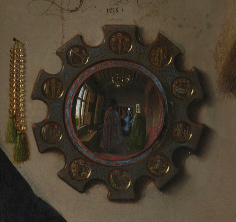 For example, it might take time to notice the reflection in the convex mirror in Jan Van Eyck’s Arnolfini Portrait (1434)...
